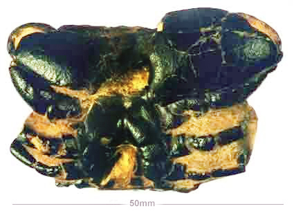 Xanthilites bowerbanki is not a very common crab and is rarely preseved as well as the illustrations would suggest. The carapace is often crushed and dis-articulated. | |||||||||||||||