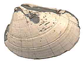 Lentipecten comeus on a phosphatic nodule. A unique specimen.